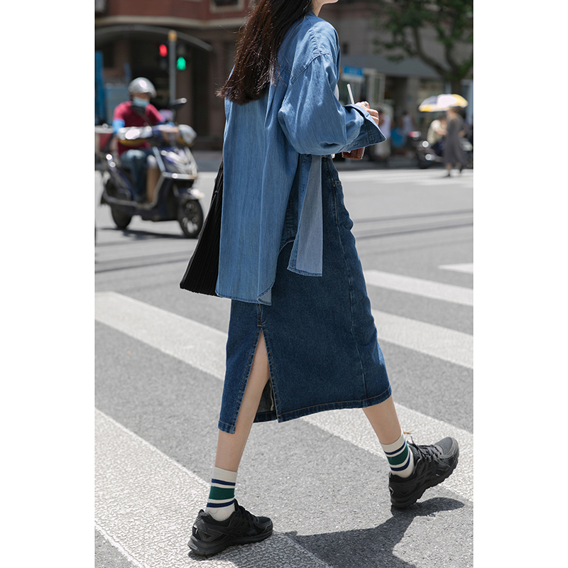 Find a retro denim skirt female summer long skirt small a-line high waist and thin long straight skirt spring