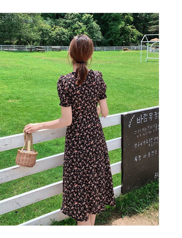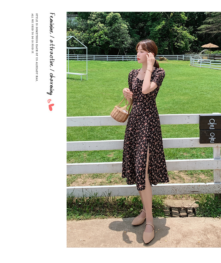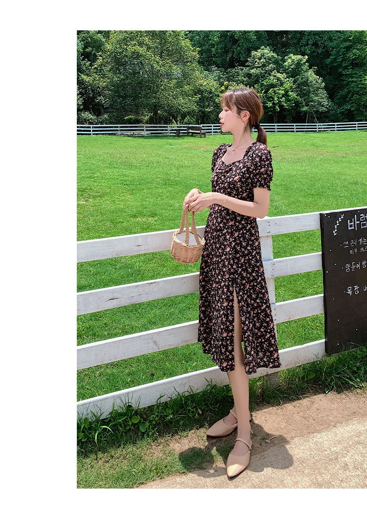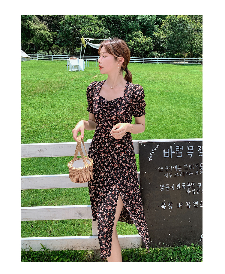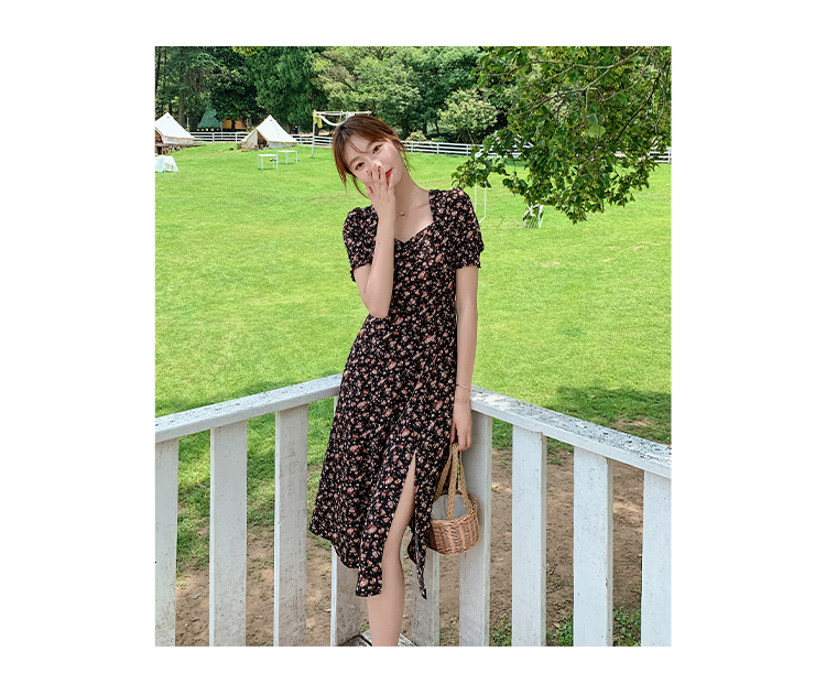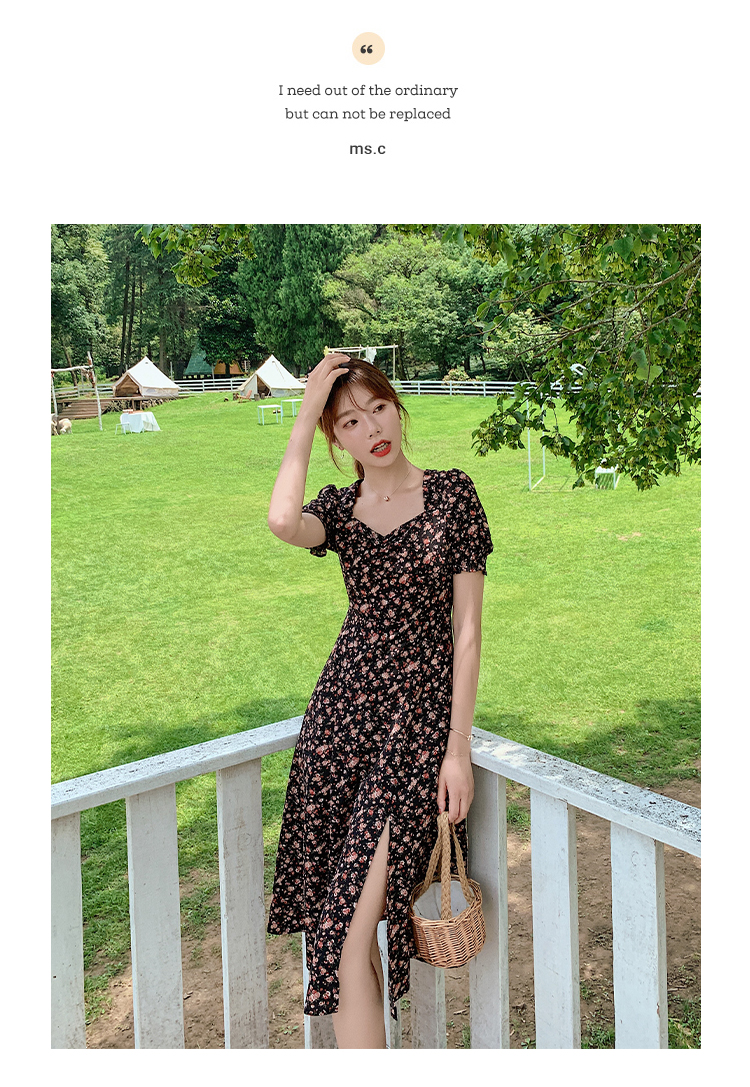 2021 new tea break floral dress female summer small design sense niche French slit temperament skirt
