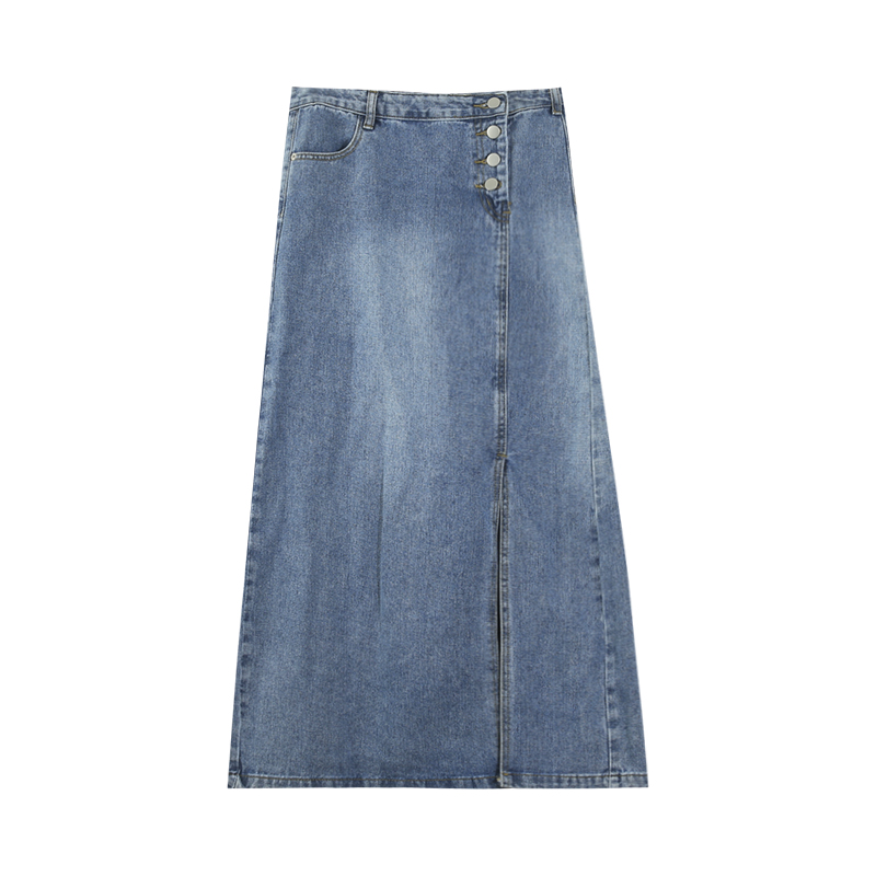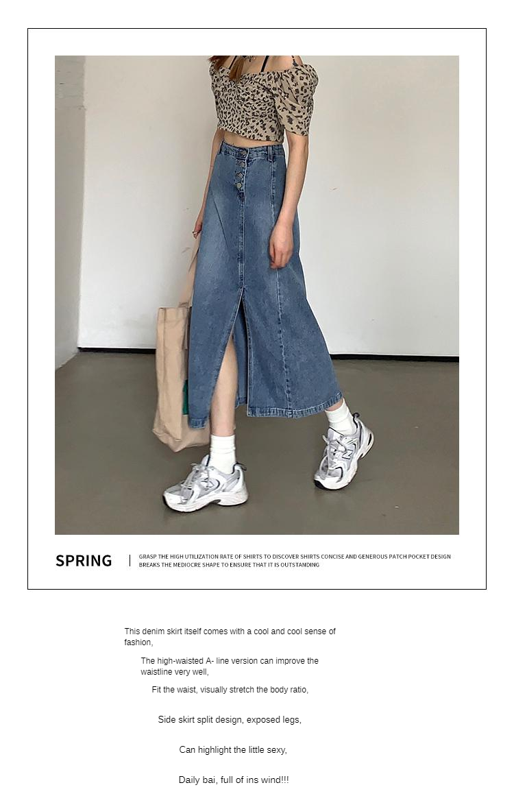 DREAM SEVEN77 split denim skirt female spring 2021 new high waist a-line thin mid-length skirt