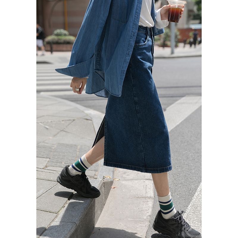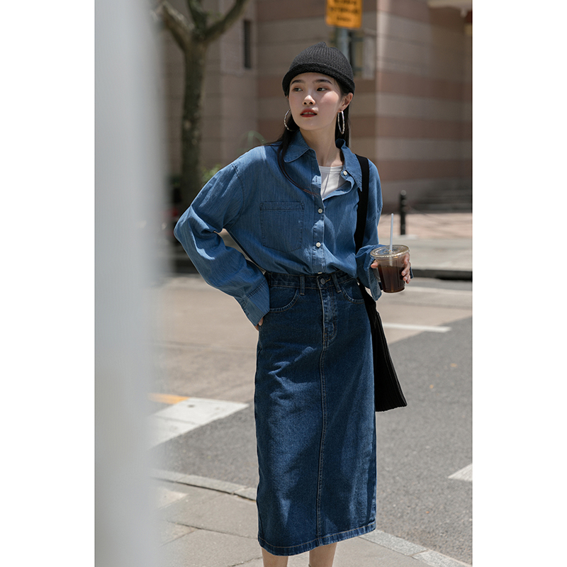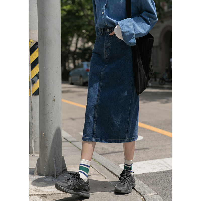 Find a retro denim skirt female summer long skirt small a-line high waist and thin long straight skirt spring