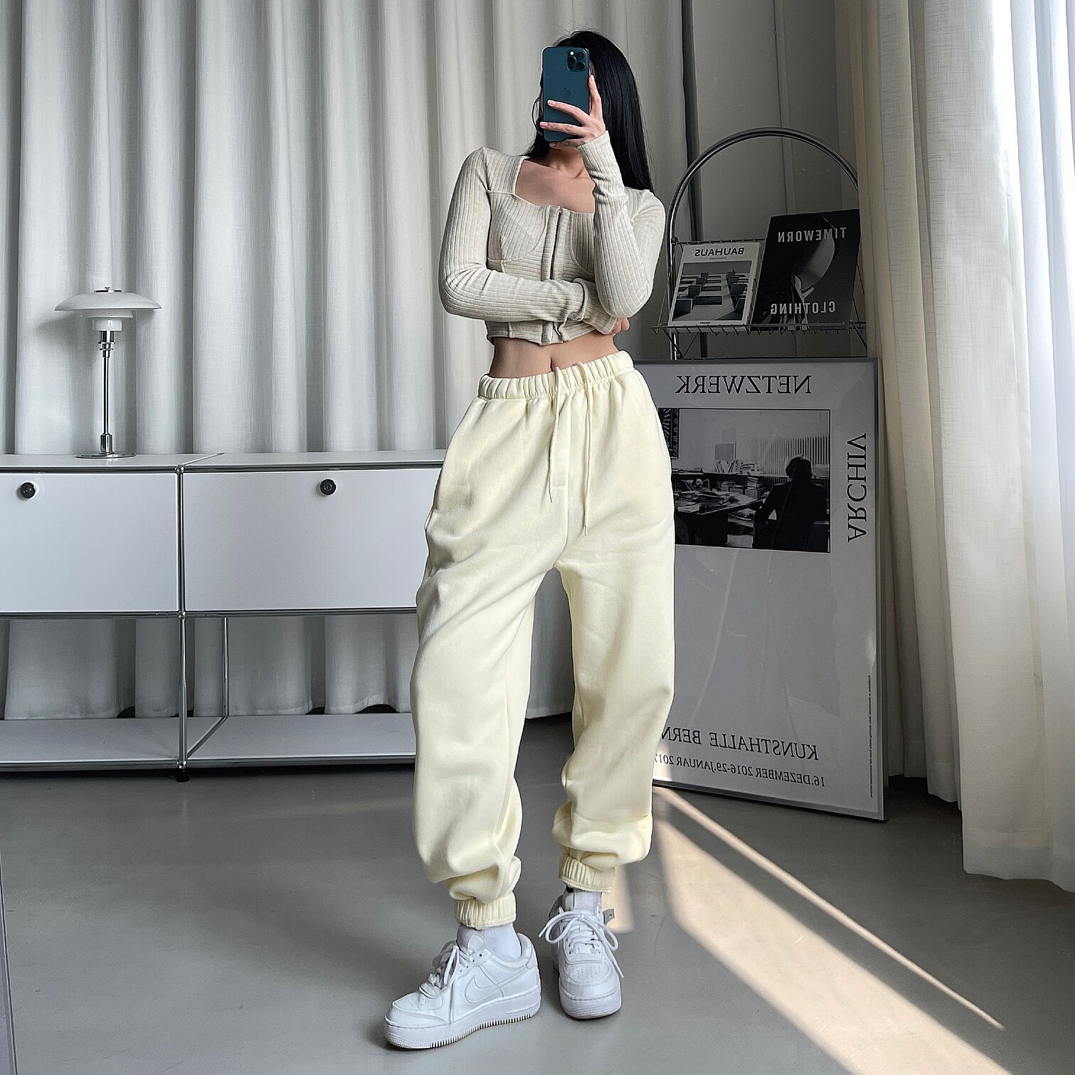 High-waisted loose velvet with new vintage trousers