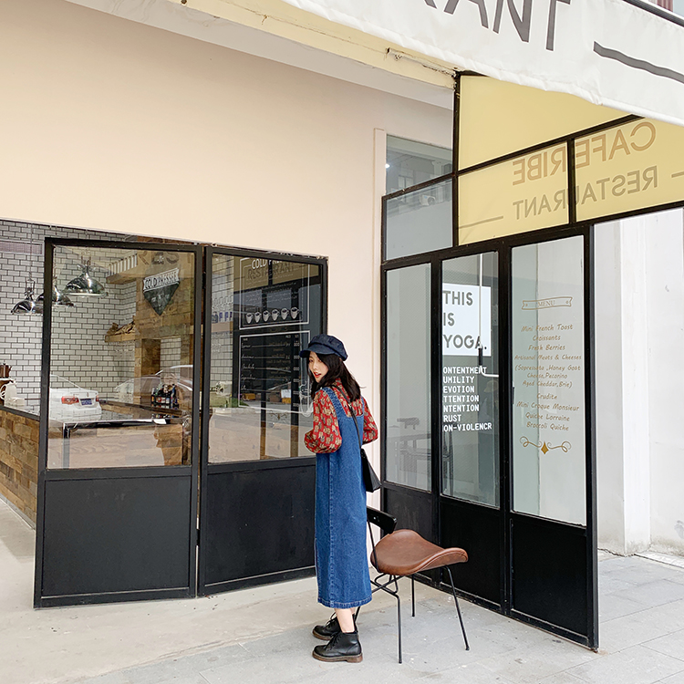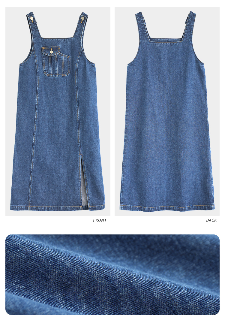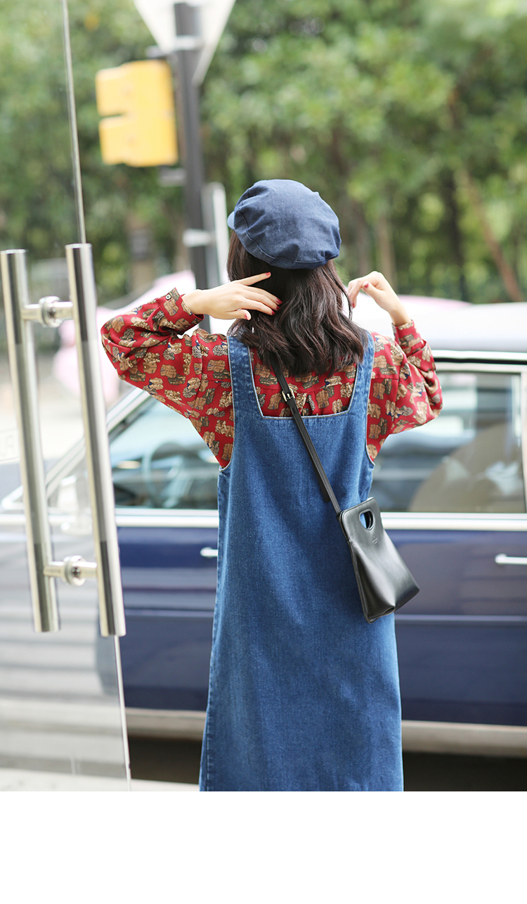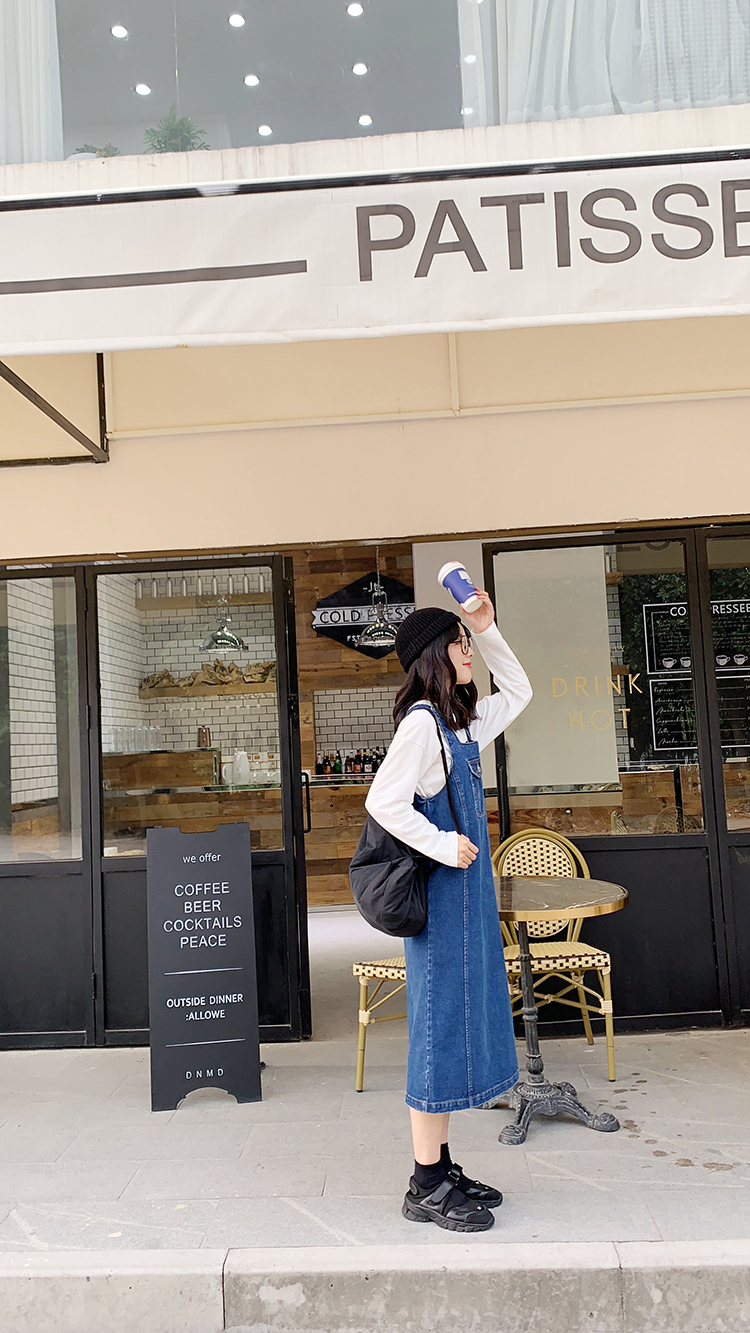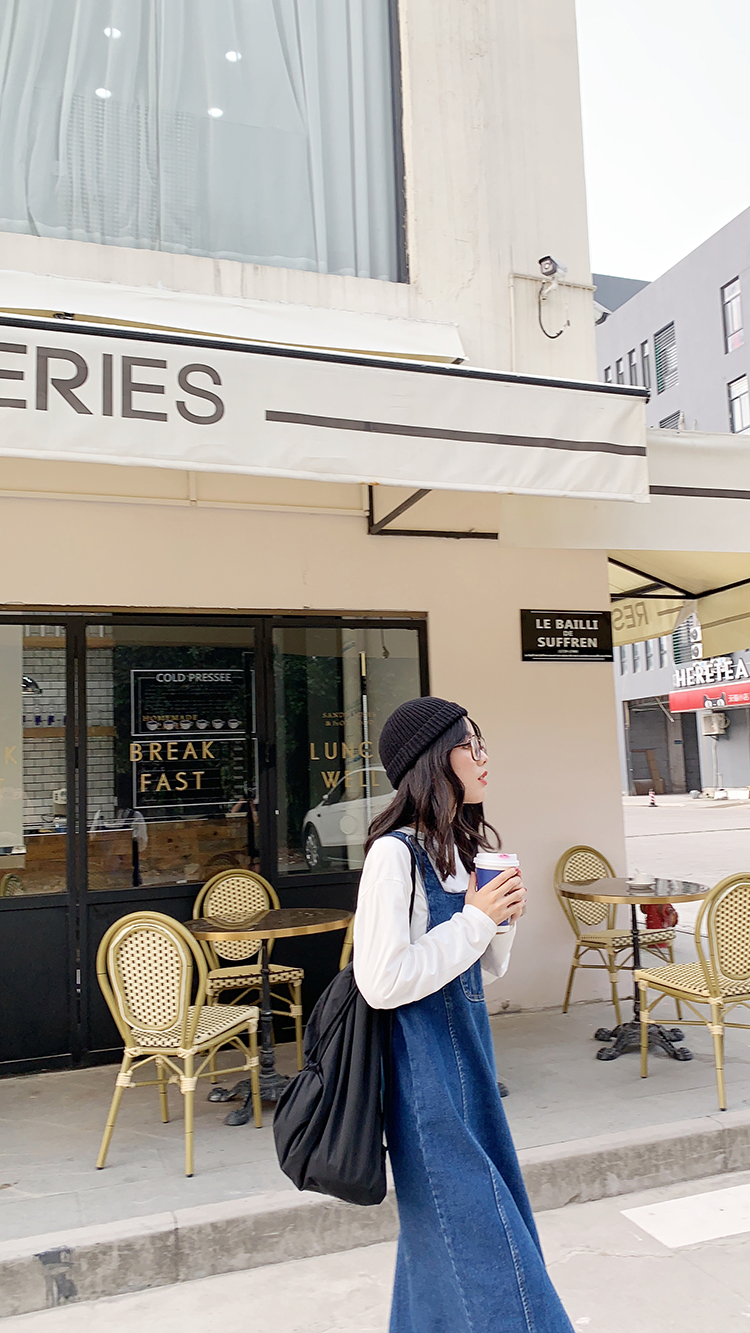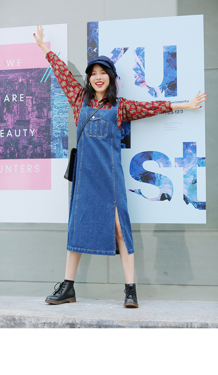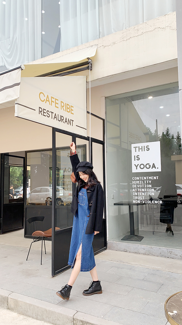 Huaji split denim suspender skirt female spring dress mid-length college style retro dress spring and summer Q020