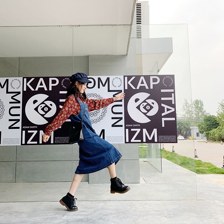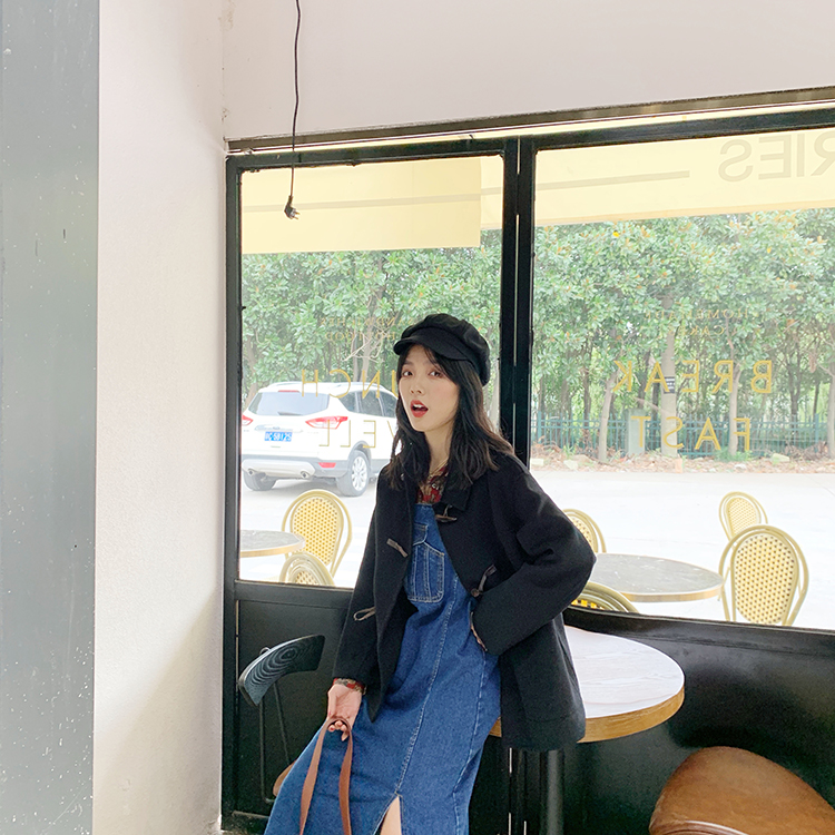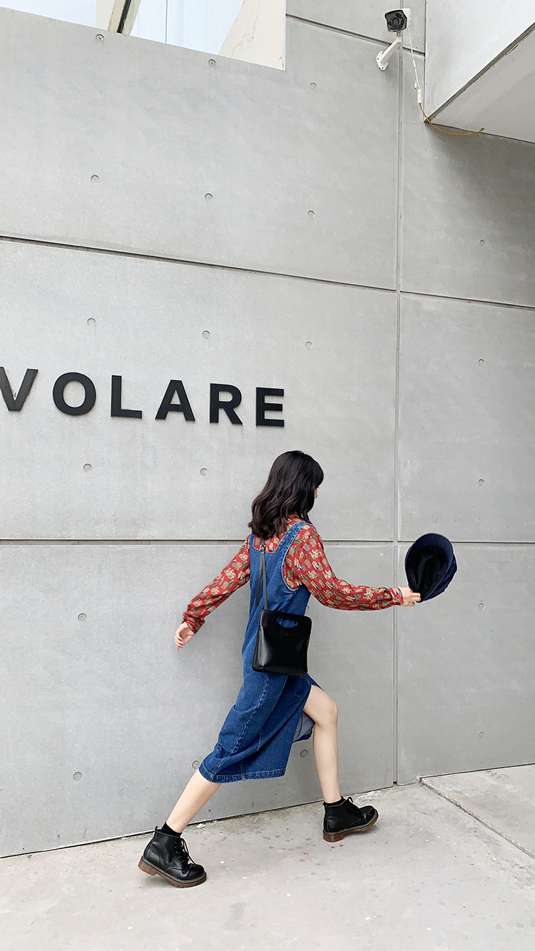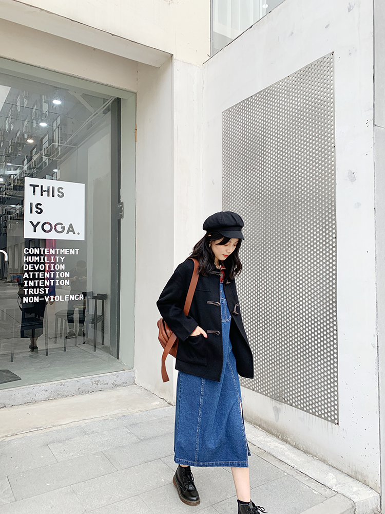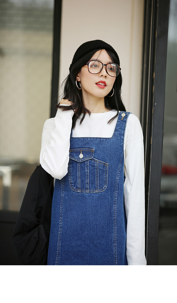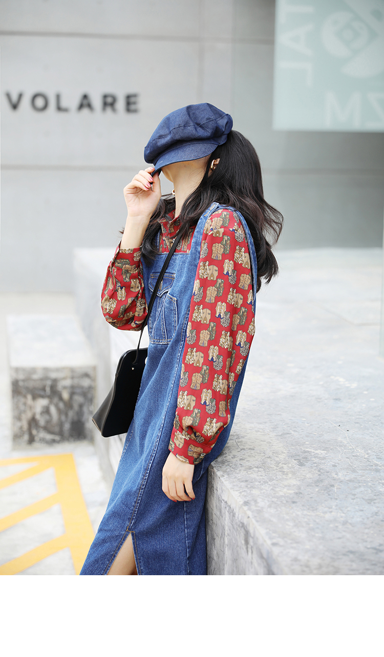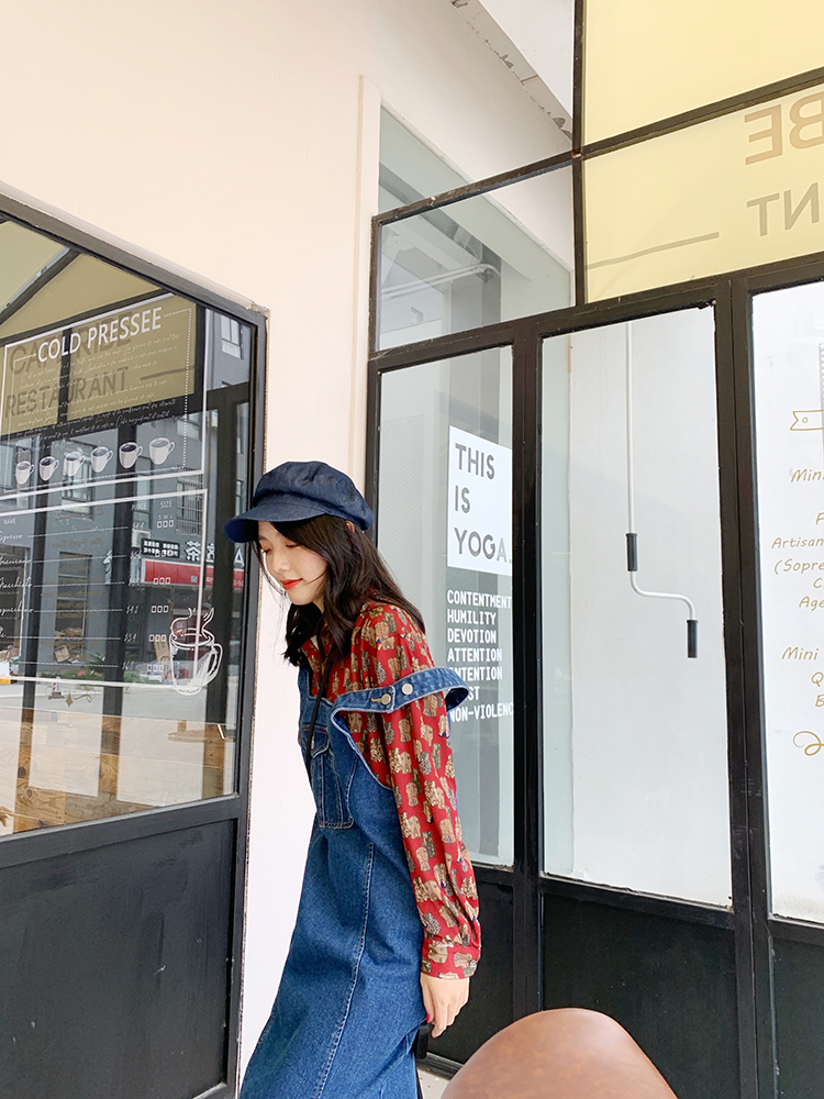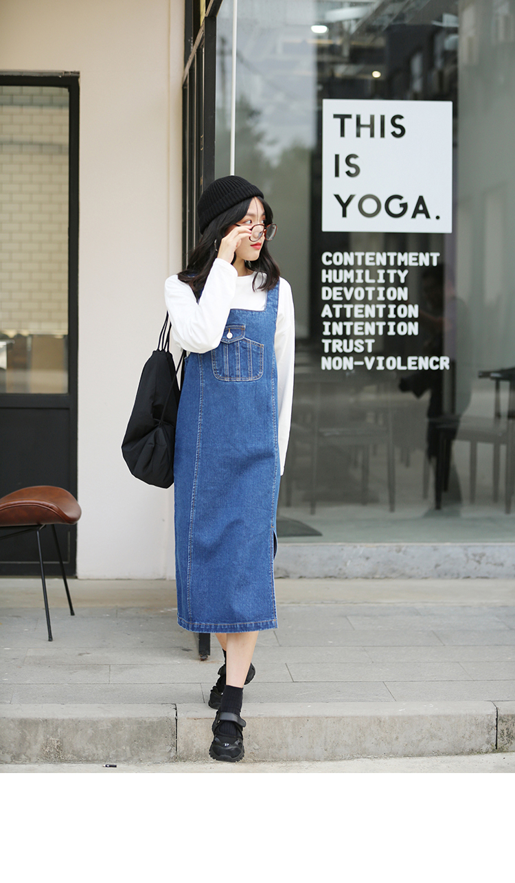 Huaji split denim suspender skirt female spring dress mid-length college style retro dress spring and summer Q020