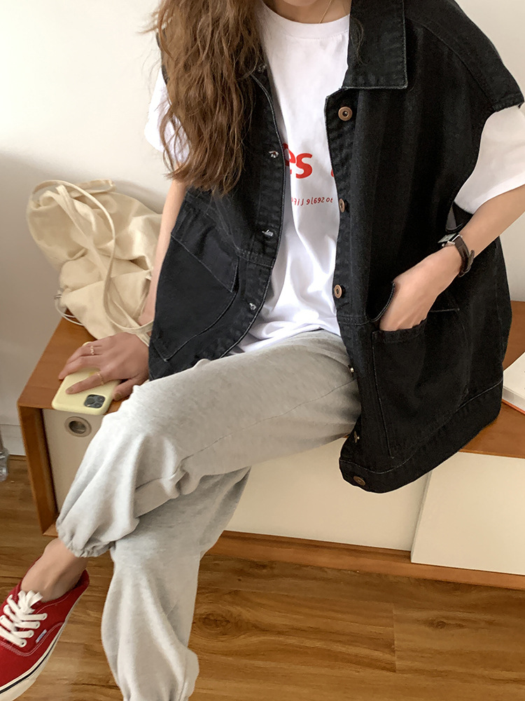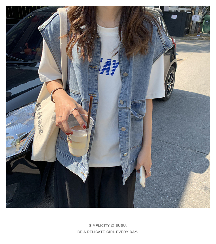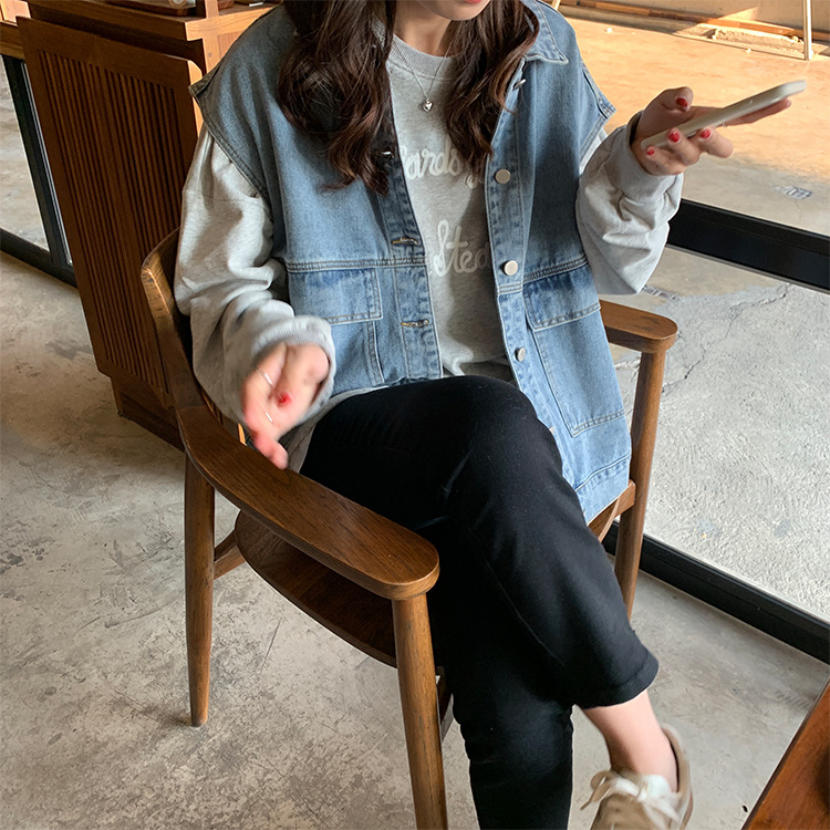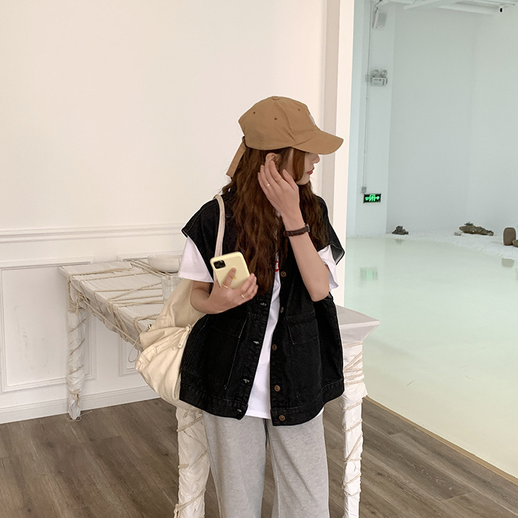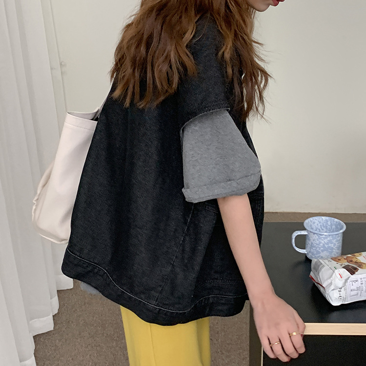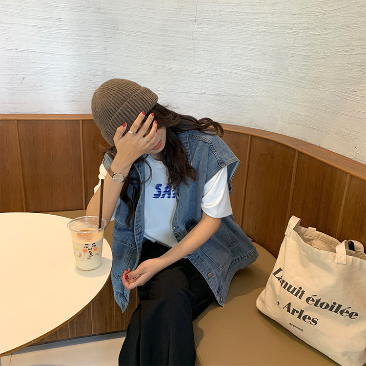 Korean version of loose tooling vest and denim waistcoat jacket, women's sleeveless waistcoat cardi