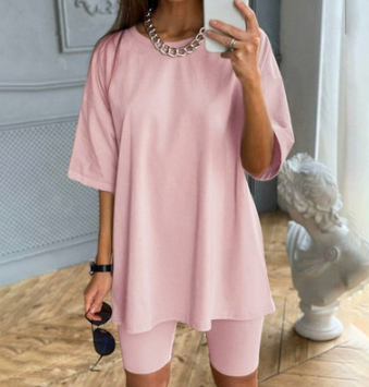 Ladies 2 piece home relaxed sport chic suit with solid color