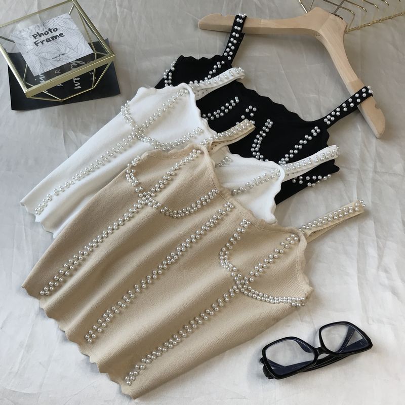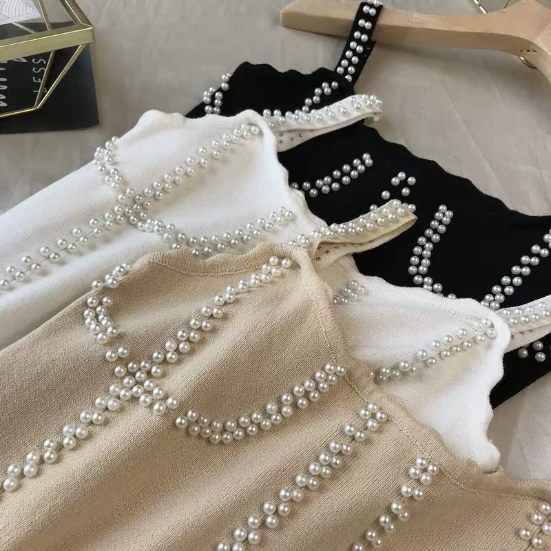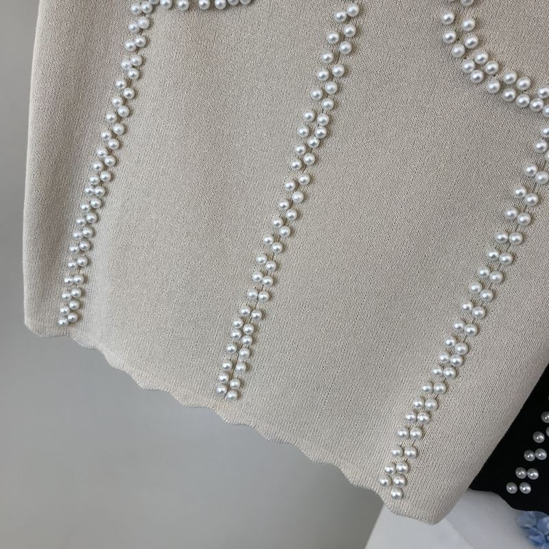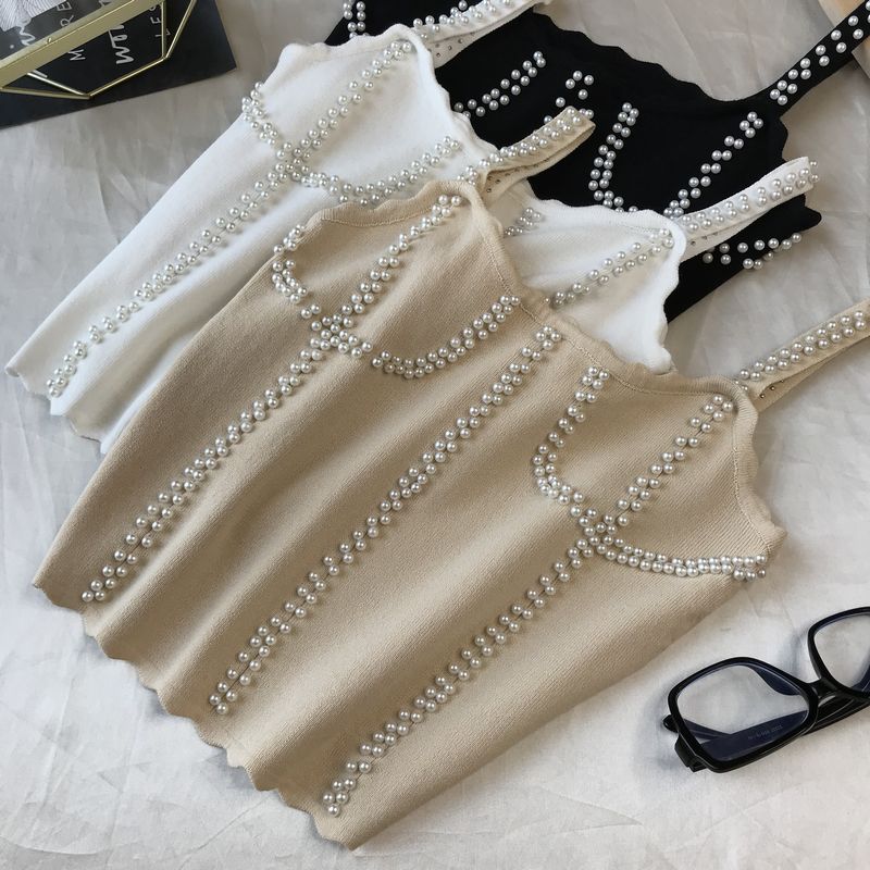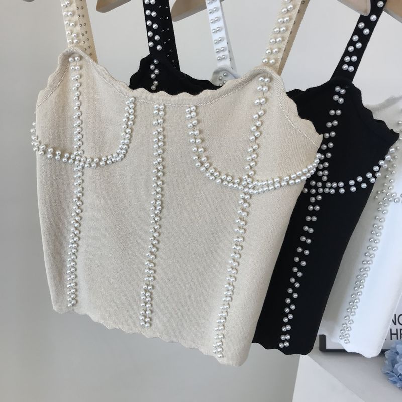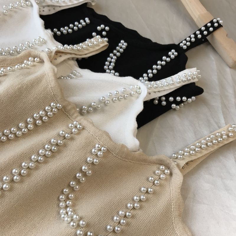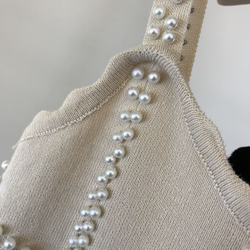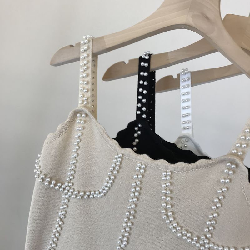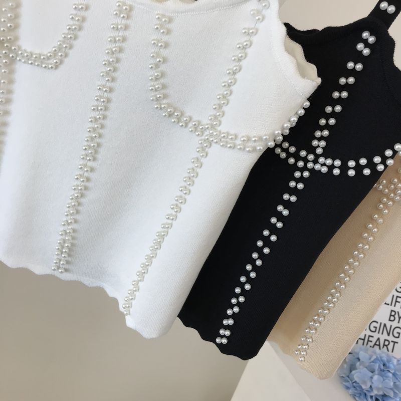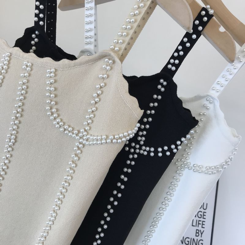 Retro ancient fashion pearl female vest wild knitted bottom unlined upper garment sleeveless slim