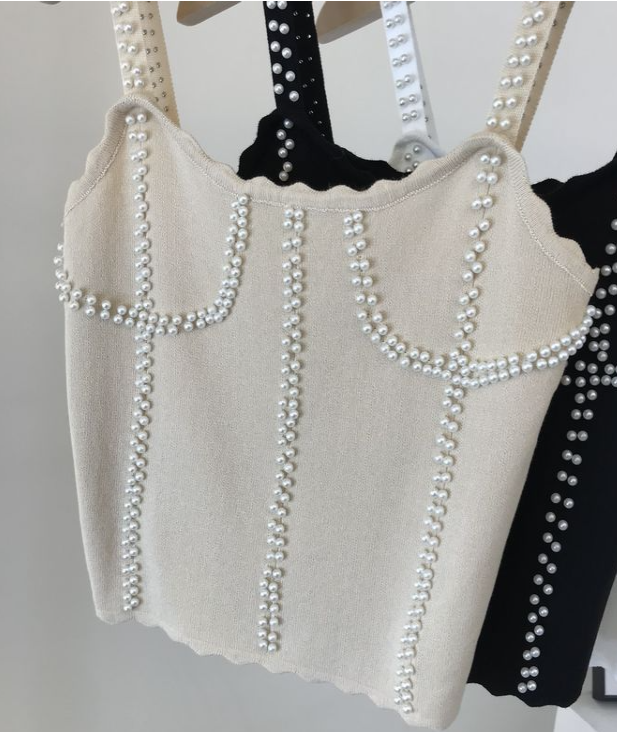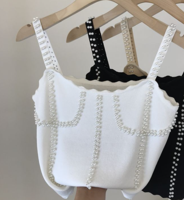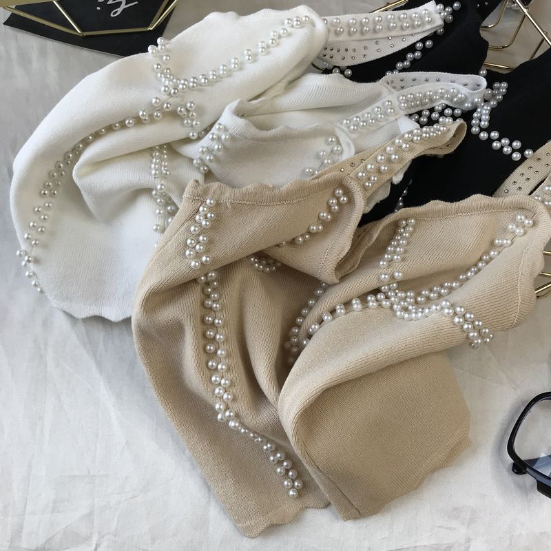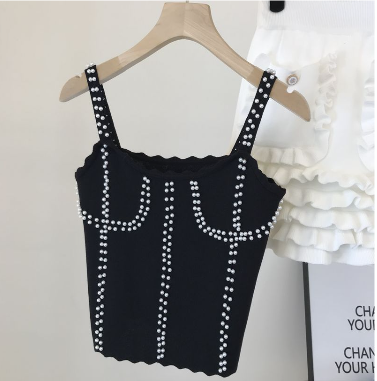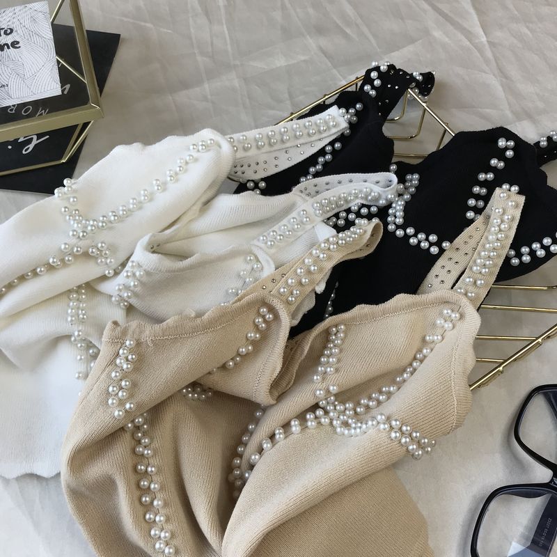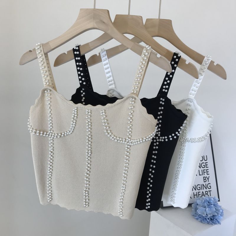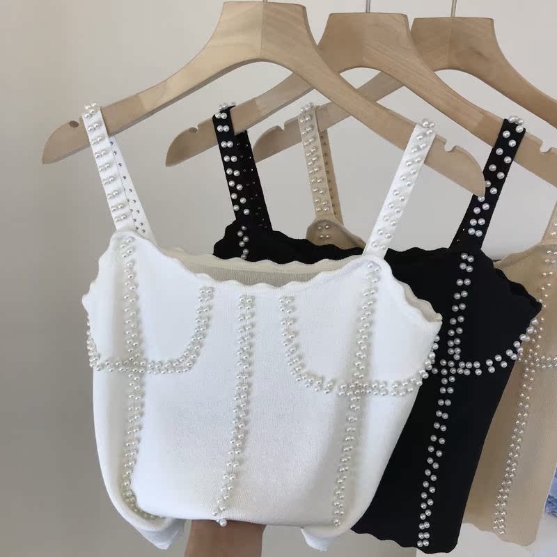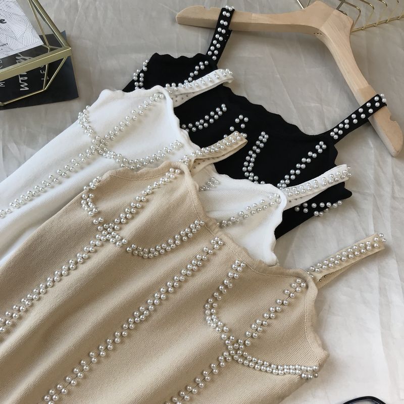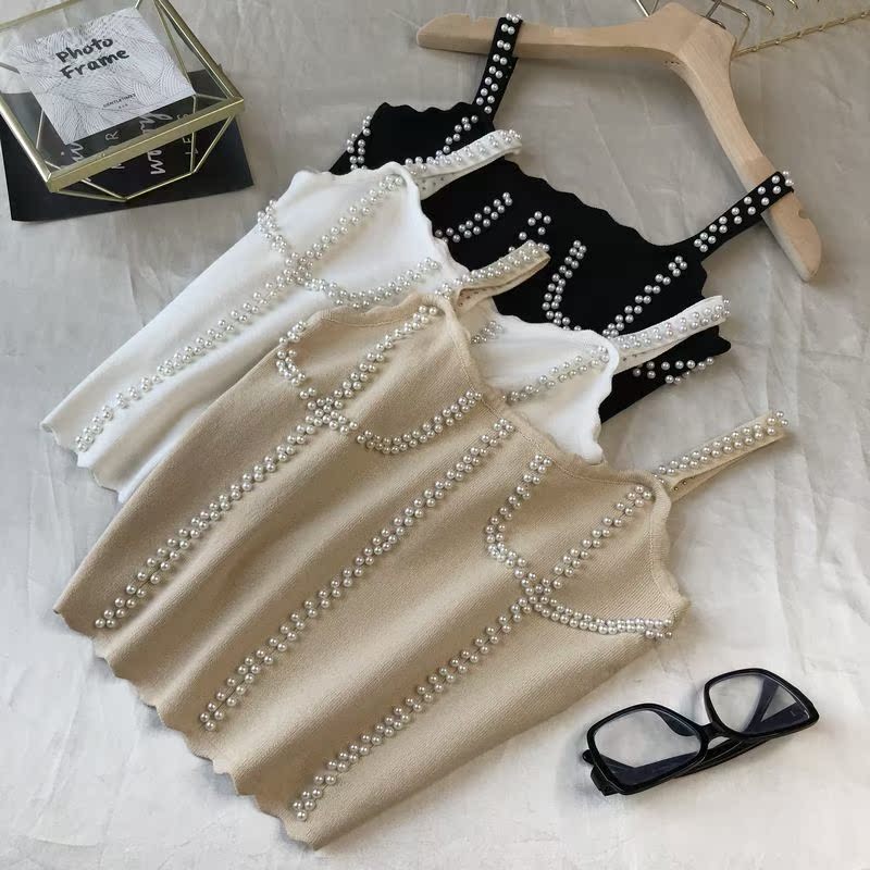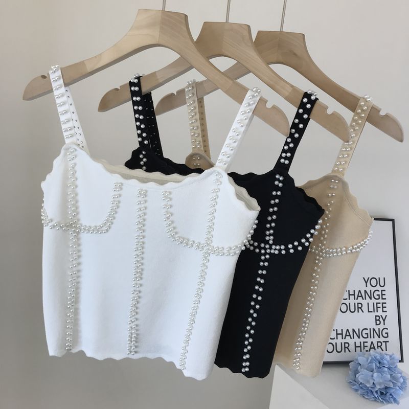 Retro ancient fashion pearl female vest wild knitted bottom unlined upper garment sleeveless slim