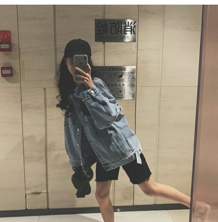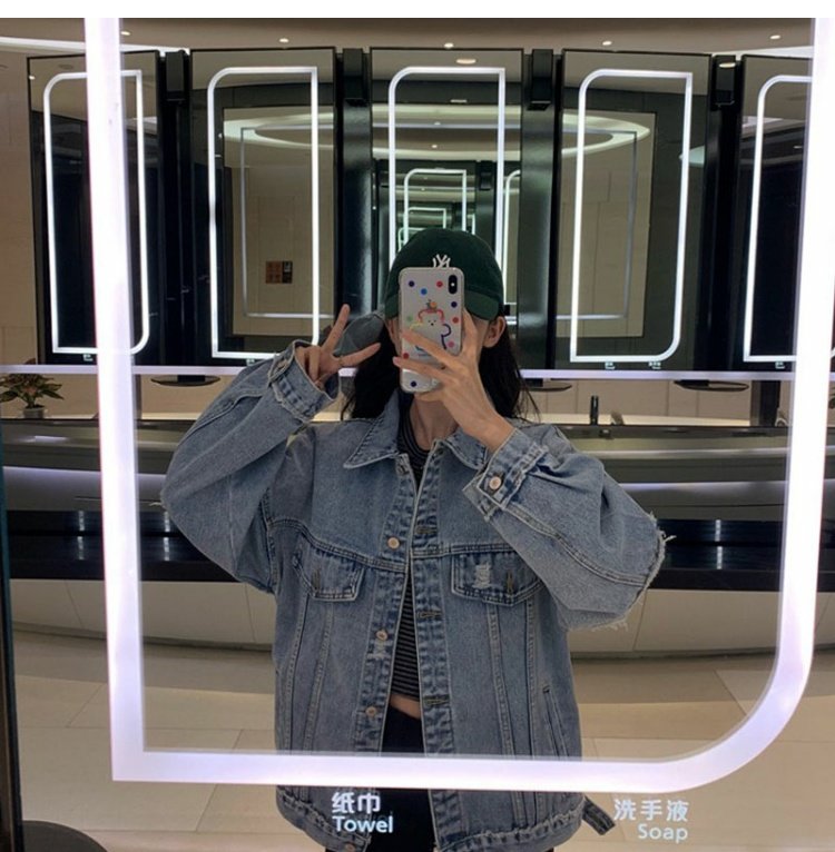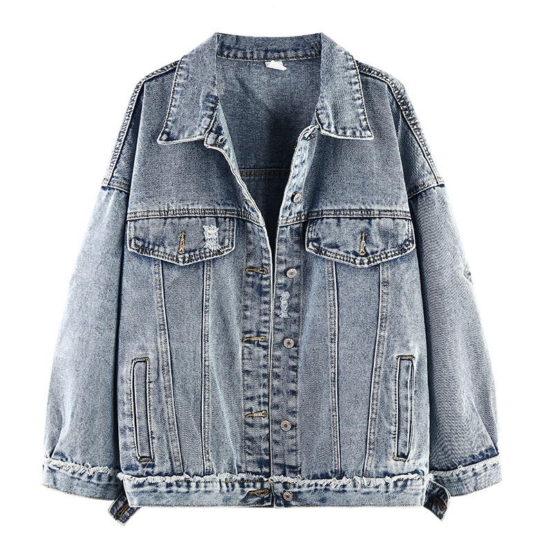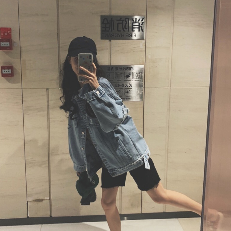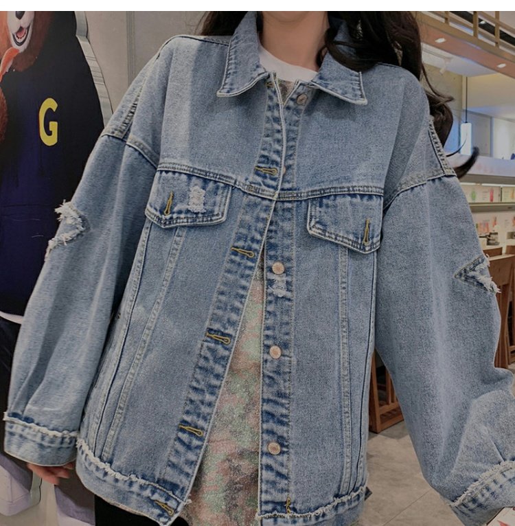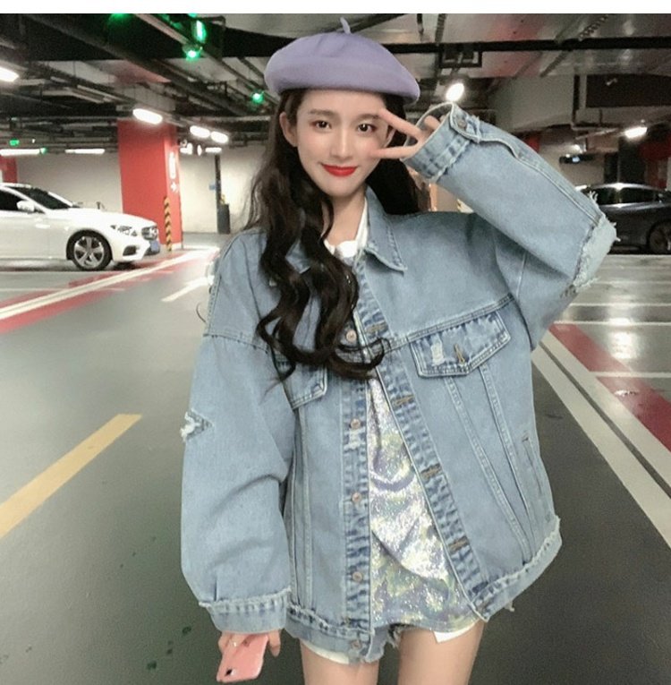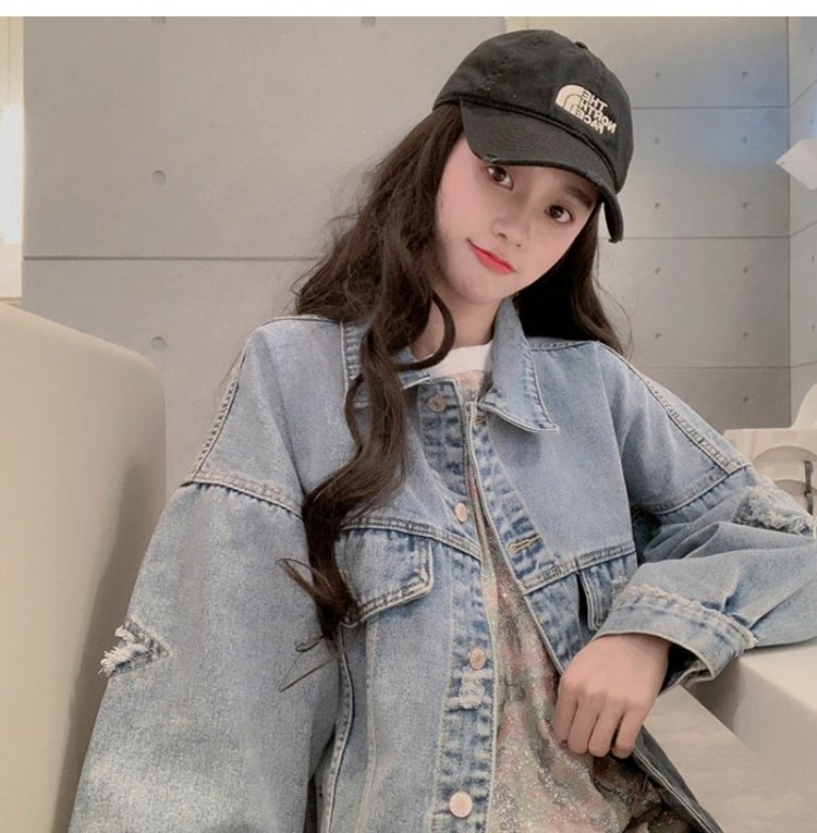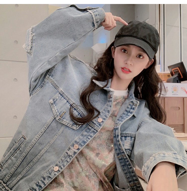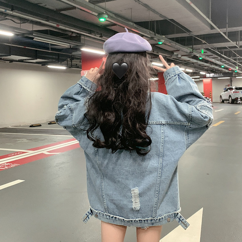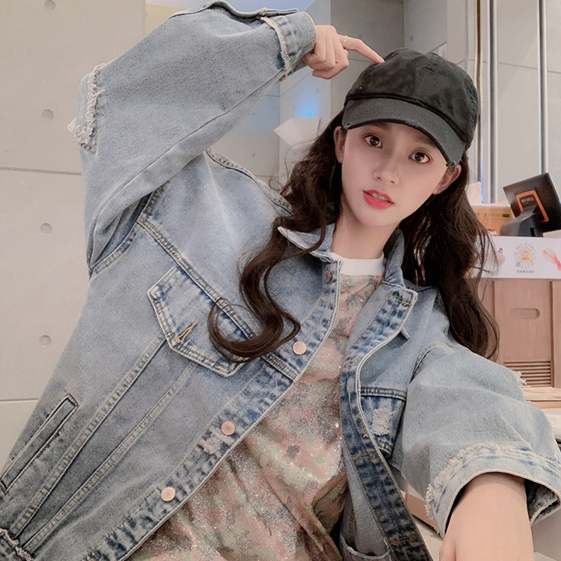 Short ripped denim jacket female spring and autumn 2021 new Korean loose retro port style denim ins tide