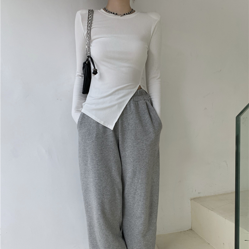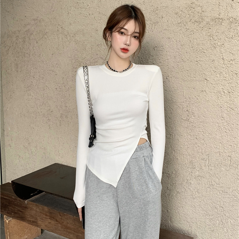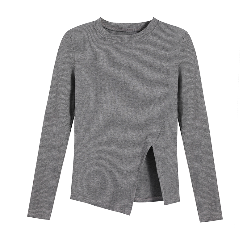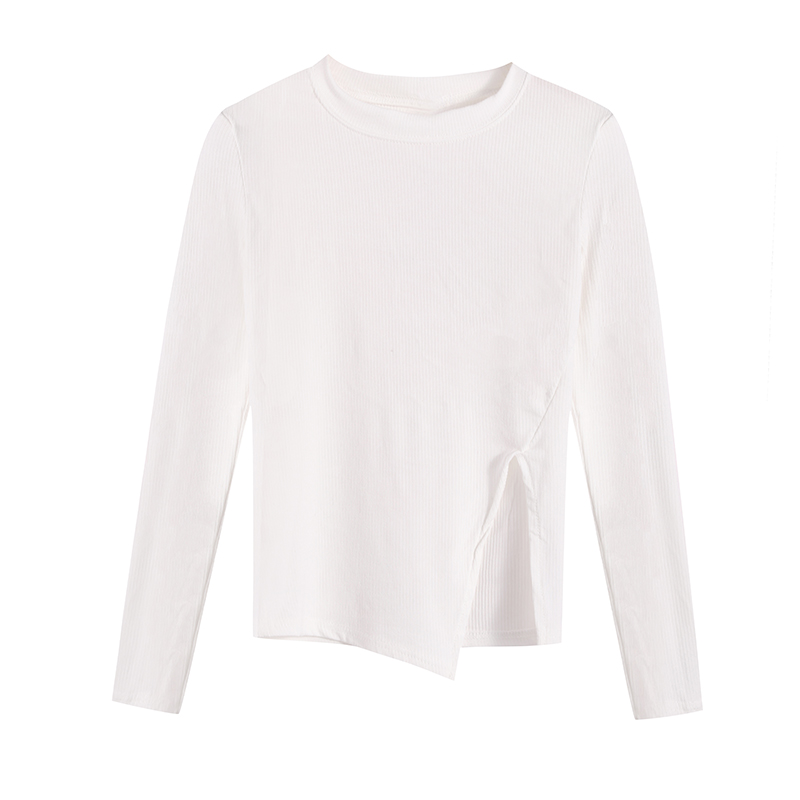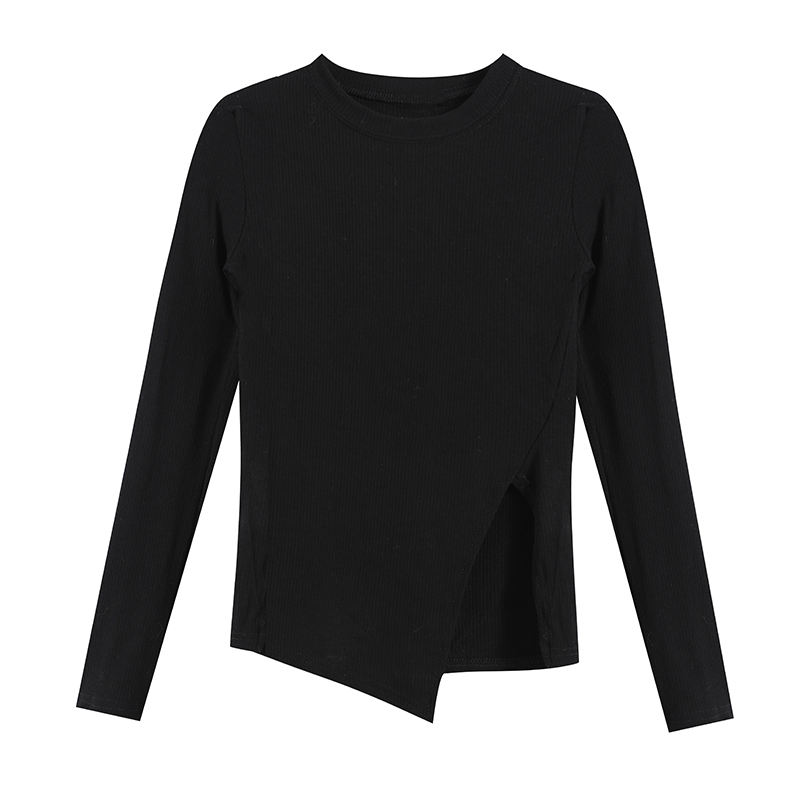 Slit top women's bottoming shirt 2021 new spring tight-fitting thin design irregular knit sweater sweater tide
