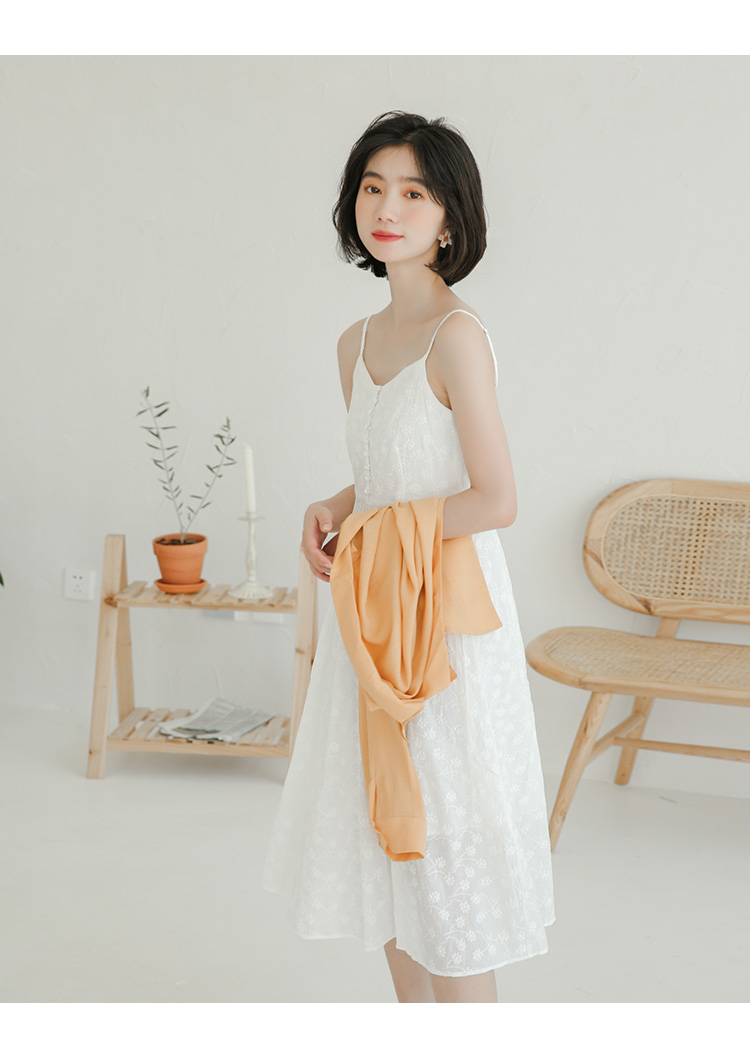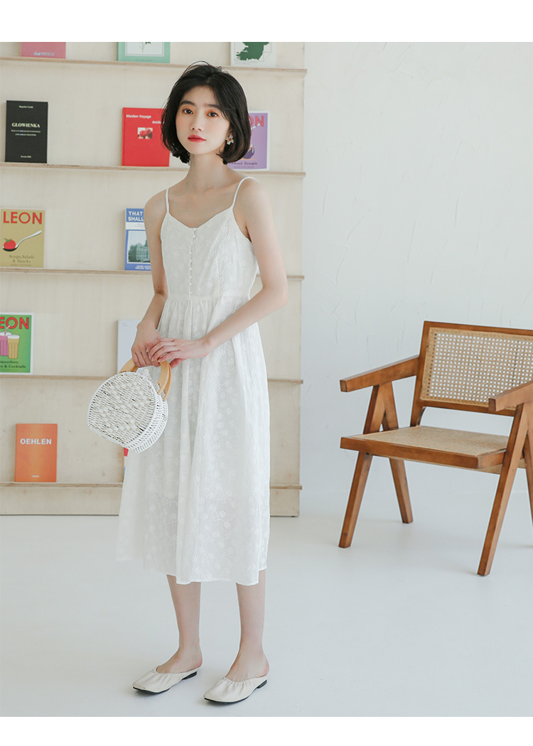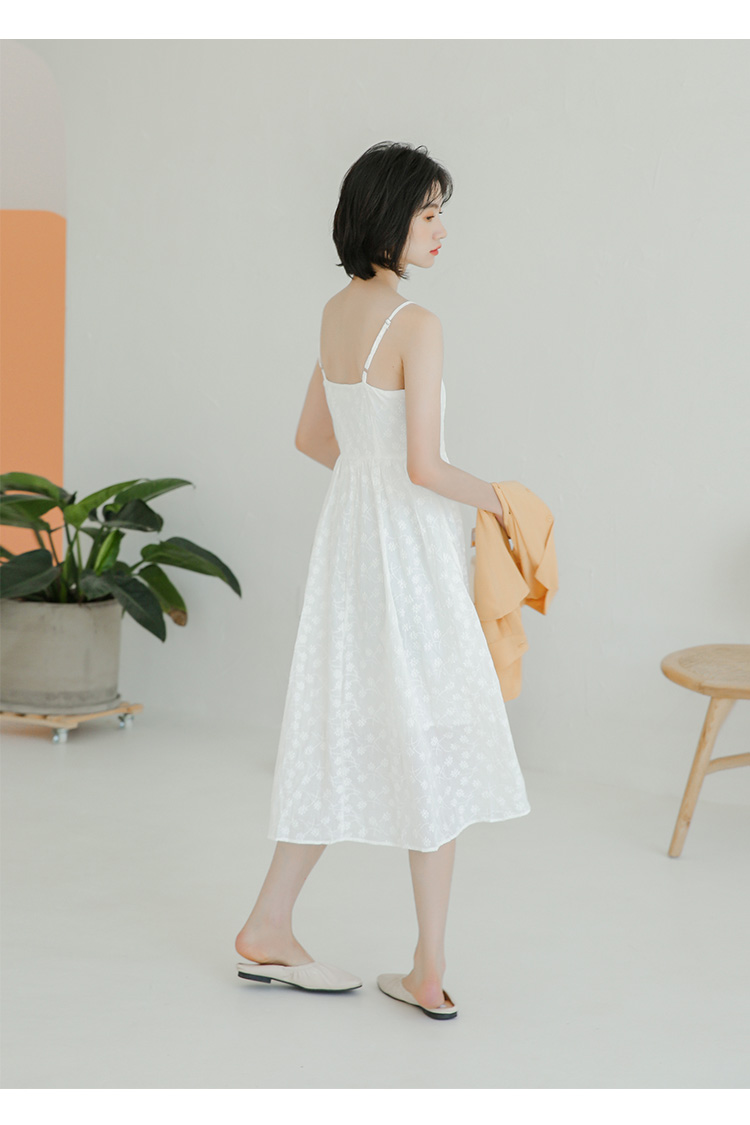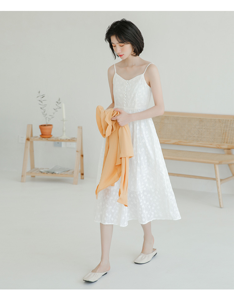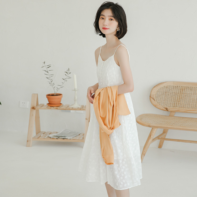 White suspender dress female summer was thin and cold and elegant French niche bellflower skirt fairy skirt chic gentle