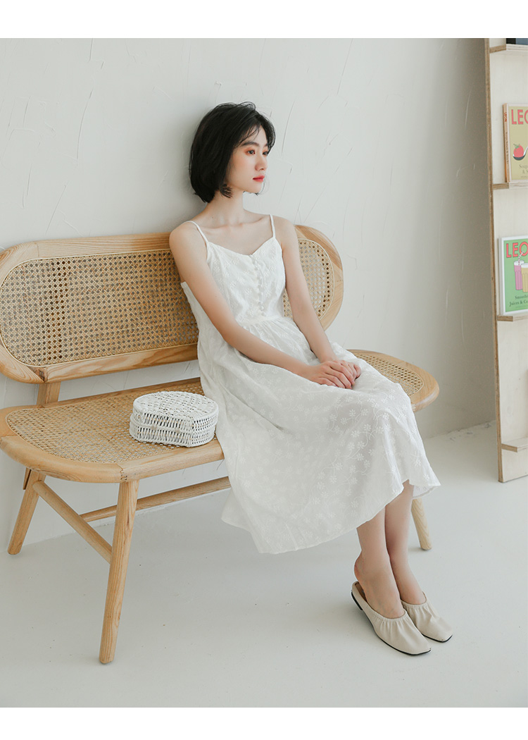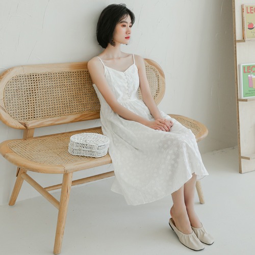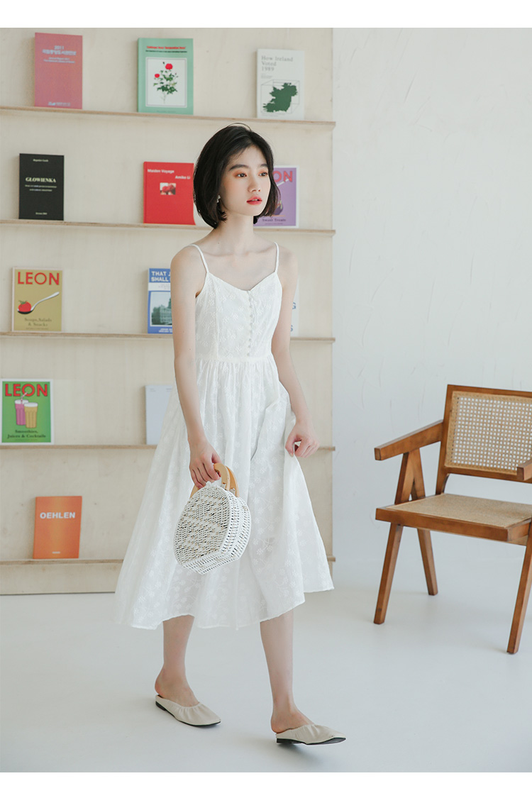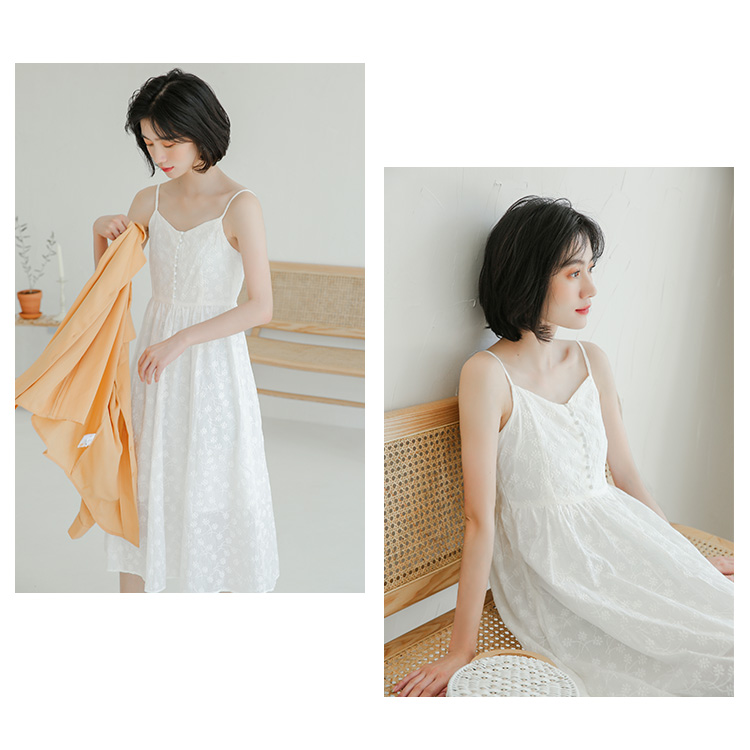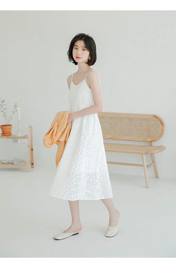 White suspender dress female summer was thin and cold and elegant French niche bellflower skirt fairy skirt chic gentle
